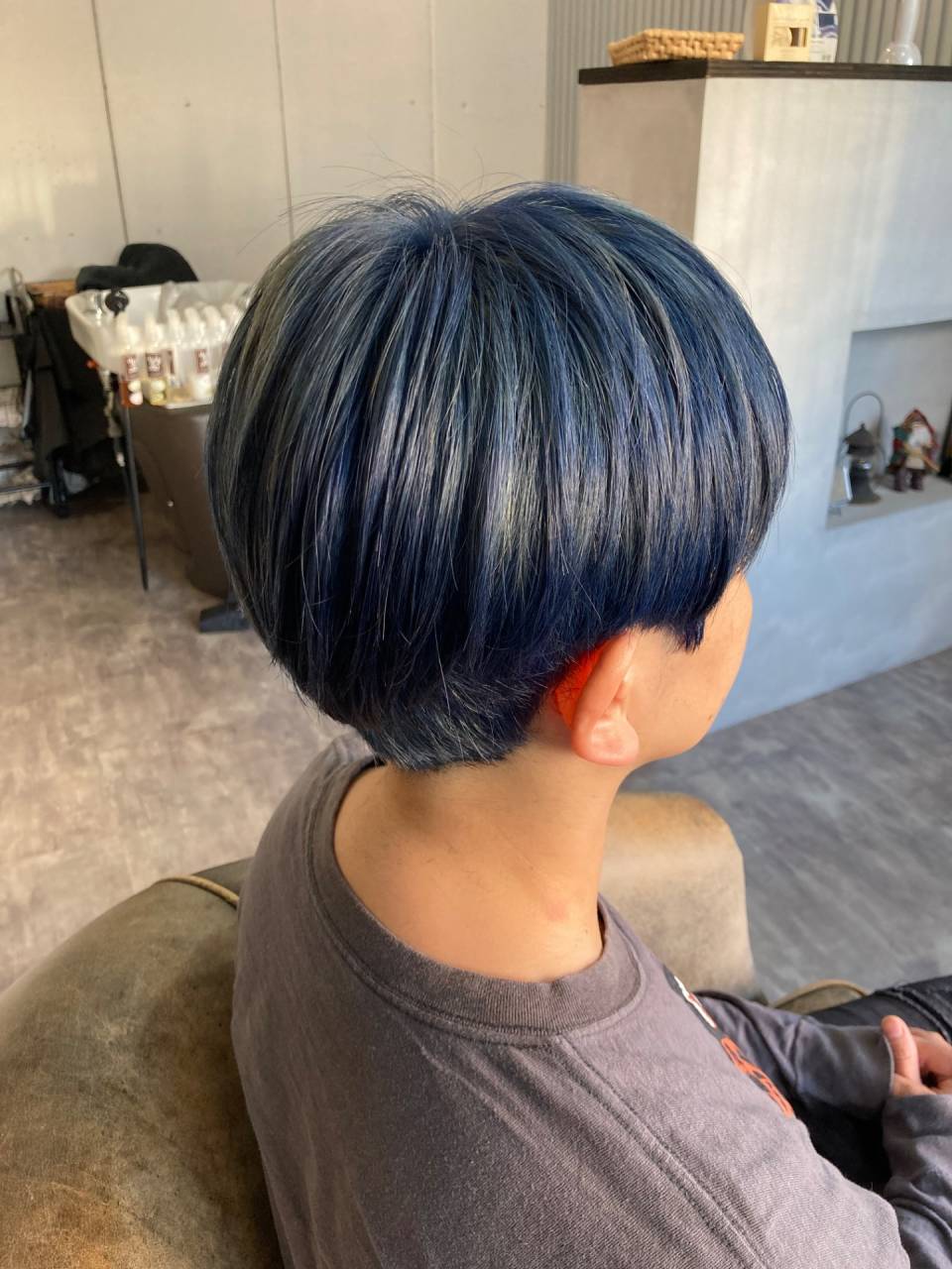 今回のお客様は全頭のハイトーンカラーなので、インパクトはありますが比較的、落ち着いた印象のブルー系カラーですので人気のあるカラーです。