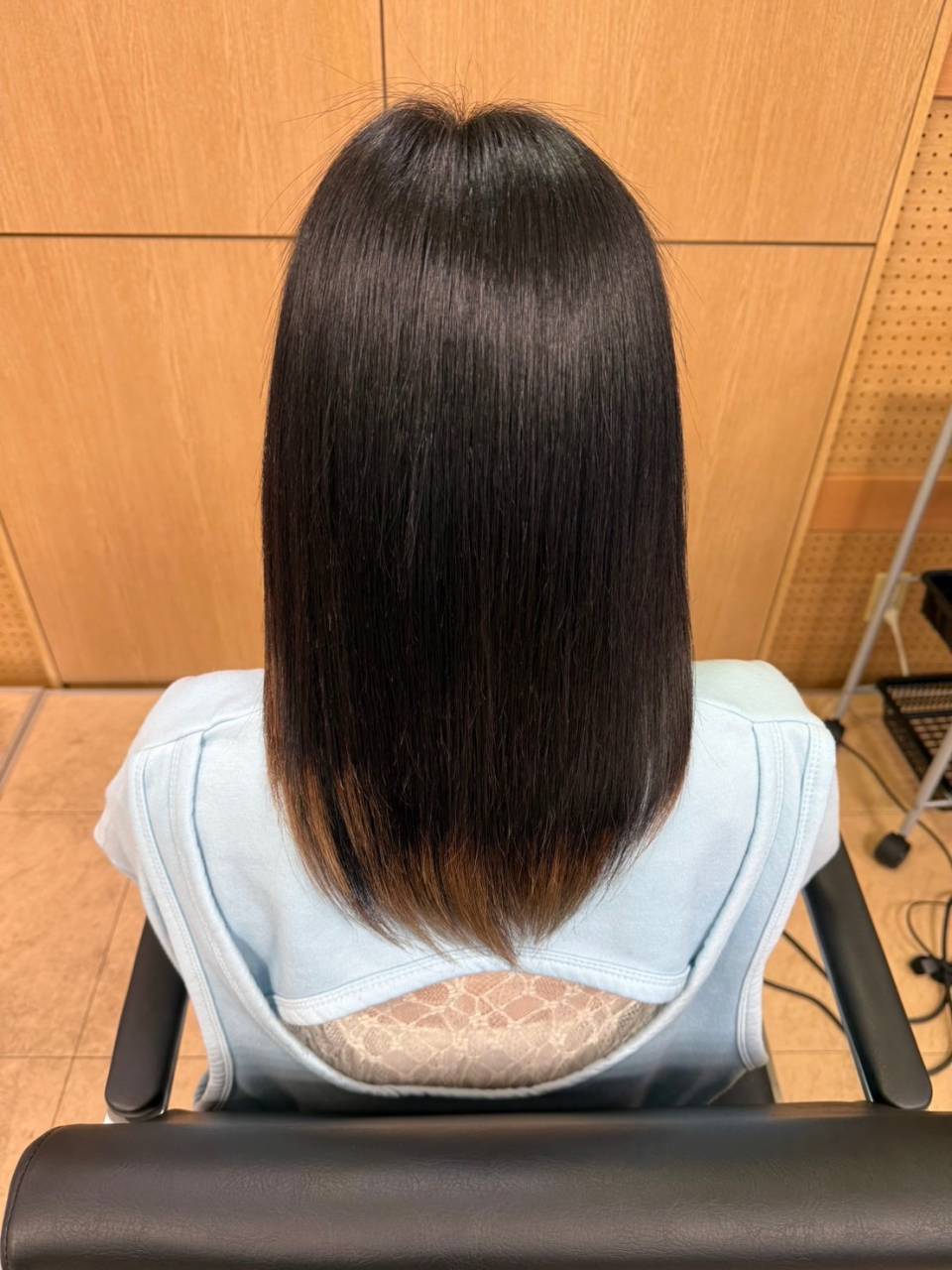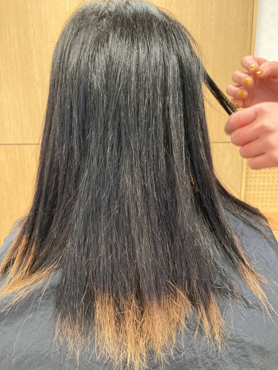 毛先、ブリーチ毛と切れ毛で難易度高めと思いましたが、ストレートは勿論、毛先のカラーも凄く綺麗な色でした!